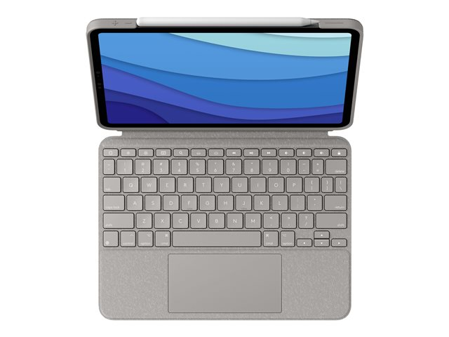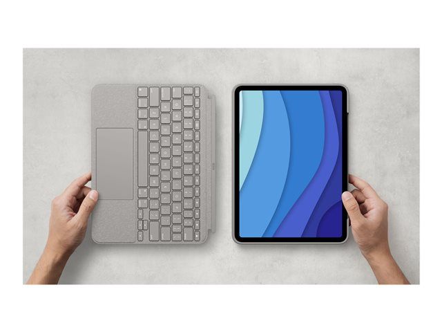 Logitech Combo Touch - Näppäimistö- ja kalvokotelo - sekä kosketuslevy - taustavalaistu - Apple Smart connector - QWERTY - espanjalainen - hiekka malleihin Apple 11-inch iPad Pro (1. laitesukupolvi, 2. sukupolvi, 3. sukupolvi)
