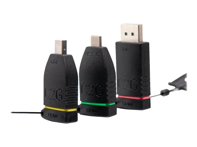 C2G Retractable Table Box Mount 4K HDMI Adapter Ring with Color Coded Mini DisplayPort, DisplayPort, and USB-C - Videosovitinpakkaus - musta - 4K-tuki 29880