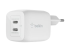 Belkin BoostCharge Pro GaN - Verkkosovitin - PPS ja GaN-teknologia - 45 watti(a) - Fast Charge, PD 3.0 - 2 lähtöliittimet (2 USB-C:tä) - valkoinen WCH011VFWH