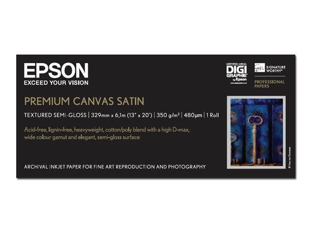 Epson PremierArt Water Resistant Canvas - Kiiltävä - Rulla (33 cm x 6,1 m) - 350 g/m² - 1 rulla (rullat) kangaskuvioinen paperi malleihin SureColor P5000, P800, SC-P10000, P20000, P5000, P700, P7500, P900, P9500